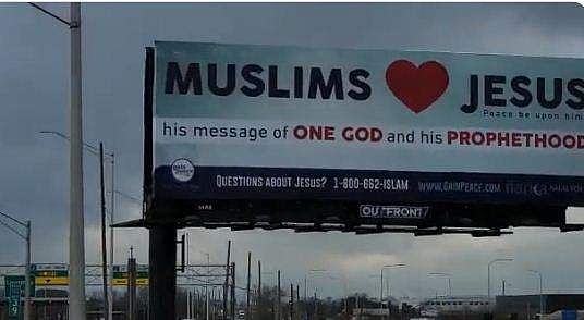 മുസ്ലീങ്ങള്‍ യേശുവിനെ സ്‌നേഹിക്കുന്നു എന്ന് എഴുതിയിരിക്കുന്ന പരസ്യബോര്‍ഡ്‌