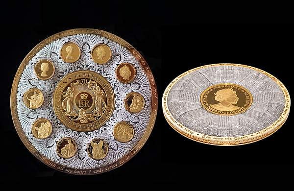 9.6 ഇഞ്ച് വ്യാസമുള്ള നാണയം ഒരു ബാസ്കറ്റ് ബോളിന്റെ വലുപ്പമുള്ളതാണ്. 16 മാസമെടുത്താണ് നാണയം നിർമ്മിച്ചത്. പ്രശസ്ത കലാകാരന്മാരായ മേരി ഗില്ലിക്, അർനോൾഡ് മിച്ചിൻ, റാഫേൽ മക്ലൂഫ്, ഇയാൻ റാങ്ക്-ബ്രോഡ്ലി എന്നിവർ വരച്ച എലിസബത്ത് രാജ്ഞിയുടെ ഛായാചിത്രങ്ങളും ഉൾക്കൊള്ളിച്ചാണ് നാണയെ രൂപകൽപ്പന ചെയ്തിരിക്കുന്നത്. നാരണയത്തിന്റെ ഇരുവശങ്ങളിലും രാജ്ഞിയുടെ ഉദ്ധരണികളും ഉൾപ്പെടുത്തിയിട്ടുണ്ട്.