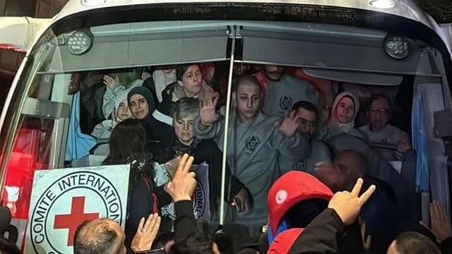 തിങ്കളാഴ്ച പ്രാദേശിക സമയം പുലര്ച്ചെ 1 മണിയോടെ, 90 പലസ്തീന് തടവുകാരെയും വഹിച്ചുകൊണ്ട് റെഡ് ക്രോസ് ബസുകള് അധിനിവേശ വെസ്റ്റ് ബാങ്കിലെ റാമല്ലയില് എത്തി. സ്ഥലത്ത് ആഹ്ലാദപ്രകടനങ്ങള് അനുവദിക്കില്ലെന്ന ഇസ്രയേല് സൈന്യത്തിന്റെ മുന്നറിയിപ്പുകള് അവഗണിച്ച് ആയിരക്കണക്കിന് ആളുകളാണ് ഇവരെ സ്വീകരിക്കാന് എത്തിയത്.