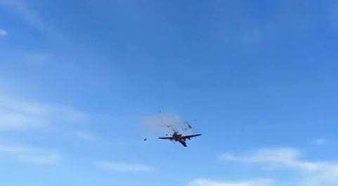 ബി -17 ബോംബര് വിമാനത്തിന്റെ മുകളിലാണ് ബെല് പി-63 കിങ് കോബ്ര ഇടിച്ചത്. നിയന്ത്രണംവിട്ട കിങ് കോബ്ര ബോംബറിന്റെ മുകളില് ഇടിക്കുകയായിരുന്നു. ഇടിയുടെ ആഘാതത്തില് രണ്ടുവിമാനങ്ങളും തകര്ന്ന് രണ്ടു കഷ്ണങ്ങളായെന്ന് ദൃശ്യങ്ങള് വ്യക്തമാക്കുന്നു. സംഭവത്തില് യുഎസ് ഫെഡറല് ഏവിയേഷന് അഡ്മിനിസ്ട്രേഷന് അന്വേഷണത്തിന് ഉത്തരവിട്ടു.