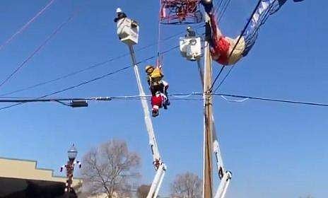 താഴ്ന്ന് പറക്കുന്നതിനിടെയാണ് വൈദ്യുതിലൈനില് കുടുങ്ങിയത്. ഉടന് തന്നെ അഗ്നിരക്ഷാ സേനാ പ്രവര്ത്തകര് എത്തി രക്ഷിക്കുകയായിരുന്നു. സാന്താക്ലോസിന് പരിക്കുകള് ഒന്നുമില്ലെന്ന് അധികൃതര് അറിയിച്ചു.
