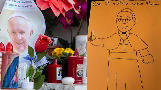 പ്രിയപ്പെട്ട പോപ്പ്, നിങ്ങള് വേഗം സുഖം പ്രാപിക്കുമെന്ന് ഞാന് പ്രതീക്ഷിക്കുന്നു. അപ്പോള് എനിക്ക് നിങ്ങളെ കെട്ടിപ്പിടിക്കാന് കഴിയും. ഞാന് നിങ്ങളെ വളരെയധികം സ്നേഹിക്കുന്നു. ഒരു കൊച്ചു പെണ്കുട്ടി അയച്ച കാര്ഡിലെ വരികള് ഇങ്ങനെയായിരുന്നു. പോപ്പ് പെണ്കുട്ടിയുടെ നേരെ കൈ നീട്ടുന്ന ചിത്രം ഉള്പ്പെടെയാണ് കുറിപ്പ്. ഞാന് നിങ്ങളെ വളരെയധികം സ്നേഹിക്കുന്നു. നിങ്ങള് ഉടന് ആശുപത്രിയില്നിന്ന് പുറത്തുവരുമെന്ന് ഞങ്ങള് പ്രതീക്ഷിക്കുന്നു മറ്റൊരു കത്തില് ഒരു കുഞ്ഞ് എഴുതി.