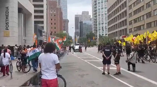 കാനഡയിലെ ടൊറന്റോയിലാണ് സമാന രീതിയിലുള്ള പ്രതിഷേധം അരങ്ങേറിയത്. ടൊറന്റോയിലെ ഇന്ത്യൻ കോൺസുലേറ്റിനു മുന്നിലായിരുന്നു പ്രതിഷേധം.