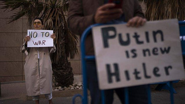 മോസ്കോയില് തടിച്ചുകൂടിയ ജനക്കൂട്ടം, രാജ്യത്തെ രക്ഷിക്കാനാണ് റഷ്യന് സൈന്യം യുക്രൈനില് ആക്രമണം നടത്തിയതെന്ന പുടിന്റെ വാദം തള്ളി. യുക്രൈന് ജനത ക്ഷമിക്കണം. യുദ്ധം അടിച്ചേല്പ്പിക്കുന്നവര്ക്കൊപ്പം തങ്ങളില്ലെന്നും പ്രതിഷേധക്കാര് പറഞ്ഞു. റഷ്യൻ പ്രസിഡന്റ് വ്ലാഡിമിർ പുടിന് പുതിയ ഹിറ്റ്ലര് ആണെന്നും പ്രതിഷേധക്കാര് ആരോപിച്ചു.