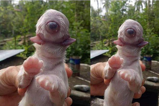 ഒറ്റക്കണ്ണും രണ്ട് നാവുകളുമായാണ് സൈക്ലോപ്സ് എന്ന നായ്ക്കുട്ടി ജനിച്ചുവീണത്. നായ്ക്കുട്ടിയുടെ നെറ്റിയുടെ മദ്ധ്യഭാഗത്താണ് കണ്ണ് ഉണ്ടായിരുന്നത്. വായ്ഭാഗത്തായി രണ്ട് നാവുകളുണ്ടായിരുന്നു. എന്നാൽ സൈക്ലോപ്സിന് മൂക്ക് ഇല്ലായിരുന്നു. സൈക്ലോപിയ എന്ന രോഗാവസ്ഥയാണ് നായ്ക്കുട്ടിയെ ബാധിച്ചത്.