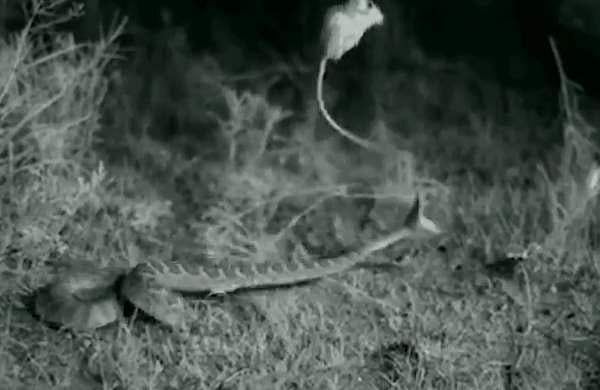 മുകളിലേക്ക് കുതിച്ചു ചാടി നിലത്തെത്തിയതിന് പിന്നാലെ ഞൊടിയിടയില് എലി ഓടി രക്ഷപ്പെടുകയായിരുന്നു.വായ് തുറന്ന് എലിയെ പിടികൂടാന് ശ്രമിച്ച പാമ്പിന് പിന്നീട് ഒന്നും ചെയ്യാന് സാധിച്ചില്ല.