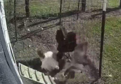 ബീറ്റങ്കബീഡന്‍ എന്ന ട്വിറ്റര്‍ പേജിലാണ് വിഡിയോ പങ്കുവച്ചിരിക്കുന്നത്. വലകള്‍ക്കിടയിലെ വിടവിലൂടെ അകത്തുകയറിയ പരുന്ത് വെളിയില്‍ നില്‍ക്കുകയായിരുന്ന കോഴിയെ ആക്രമിക്കുകയായിരുന്നു. പിടക്കോഴിയുടെ ബഹളം കേട്ട് കൂടിനുള്ളില്‍ നിന്നും പുറത്തേക്കെത്തിയ പൂവന്‍കോഴി പരുന്തിനെ തിരിച്ചാക്രമിച്ചും കൊത്തിയും അവിടെനിന്ന് ഓടിക്കുകയായിരുന്നു.