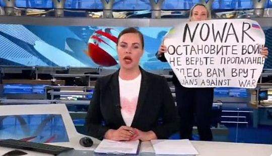 മോസ്ക്കോ: റഷ്യയില് വാര്ത്താ പരിപാടിക്കിടെ ചാനലിലെ ജീവനക്കാരിയുടെ യുദ്ധവിരുദ്ധ പ്രതിഷേധം. വാര്ത്താ പരിപാടിക്കിടെ പ്രതിഷേധമായി അവര് പോസ്റ്ററുയര്ത്തി. പിന്നാലെ ഇവരെ കാണാതായതായും പരാതി ഉയര്ന്നു. മറീന ഒവ്സ്യനിക്കോവ എന്ന യുവതിയെയാണ് കാണാതായത്. 'യുദ്ധം വേണ്ട, യുദ്ധം നിര്ത്തൂ, കുപ്രചാരണങ്ങളില് വിശ്വസിക്കരുത്' എന്നാണ് പോസ്റ്ററില് എഴുതിയിരുന്നത്.