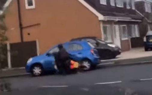 ഇംഗ്ലണ്ടിലെ ഓള്ഡ് ട്രഫോഡിലാണ് സംഭവം. സ്കൂട്ടര് മോഷ്ടിച്ച് കടന്നുകളയുന്നു എന്ന സംശയത്തില് ഇവരെ പിന്തുടര്ന്ന വഴിയാത്രക്കാരനാണ് വീഡിയോ പകര്ത്തിയത്. റോഡിന്റെ നടുവില് യുവാവ് സ്കൂട്ടര് നിര്ത്തി കൂട്ടുകാരന് വേണ്ടി കാത്തുനില്ക്കുന്നതാണ് വീഡിയോയുടെ തുടക്കം.