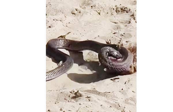 ഇവിടെ ജയിക്കുന്നത് പാമ്പാണ്. മൂര്ഖന് പാമ്പും കീരിയും തമ്മിലുള്ള പോരാട്ടമാണ് വീഡിയോയുടെ ഉള്ളടക്കം. പാമ്പിന്റെ കഴുത്തില് കടിച്ചുകിടക്കുന്ന കീരിയുടെ ദൃശ്യങ്ങളാണ് വീഡിയോയുടെ തുടക്കത്തില്. ഒറ്റനോട്ടത്തില് കീരി എളുപ്പം പാമ്പിനെ കൊല്ലുമെന്ന് തോന്നിപ്പോകും. എന്നാല് ശക്തി സംഭരിച്ച് തിരിച്ചടിച്ച പാമ്പ്, കീരിയെ കൊത്തി കൊല്ലുന്നതാണ് വീഡിയോയുടെ അവസാനം. പാമ്പിന്റെ കടിയേറ്റ് കീരി ചലനമറ്റ് കിടക്കുന്നത് കാണാം.