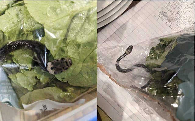സൂപ്പര്മാര്ക്കറ്റില് നിന്ന് വാങ്ങിയ ചീര വീട്ടിലെത്തി തുറന്നുനോക്കിയപ്പോള് പാക്കറ്റിനകത്ത് കണ്ടത് പാമ്പിനെ. കടയില് പാക്കറ്റില് സൂക്ഷിച്ചിരുന്ന രണ്ടുകെട്ട് ചീരയ്ക്കിടയിലാണ് പാമ്പിനെ കണ്ടത്. സിഡ്നിയിലെ ഒരു സൂപ്പര്മാര്ക്കറ്റില് നിന്ന് സാധനങ്ങള് വാങ്ങിയ എന്നയാള്ക്കാണ് അപ്രതീക്ഷിതമായി പാമ്പിനെ നേരിടേണ്ടിവന്നത്.