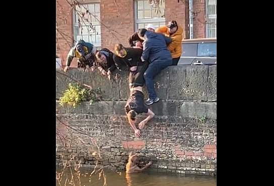 ഇംഗ്ലണ്ടിലെ മാഞ്ചസ്റ്ററില് നിന്നുള്ളതാണ് ദൃശ്യങ്ങള്. ചെളിനിറഞ്ഞ കനാലില് വീണ ഒരു നായയെ രക്ഷിക്കാനാണ് വിദ്യാര്ഥികളുടെ ശ്രമം. അബദ്ധത്തില് കനാലിലേക്ക് വീണ വളര്ത്തു നായയെ രക്ഷിക്കാനായി അതിന്റെ ഉടമ ആളുകളോട് സഹായം അഭ്യര്ത്ഥിച്ചിരുന്നു. എന്നാല് കനാലിനോട് ചേര്ന്ന് ഉയരത്തിലുള്ള മതിലുള്ളതിനാല് നായയെ രക്ഷിക്കാന് ആരും മുന്നോട്ടുവന്നില്ല. അതിനിടെ ഏറെ സമയമായി വെള്ളത്തില് ഉയര്ന്നുകിടക്കാന് ശ്രമിച്ചതുമൂലം നായ ക്ഷീണിച്ച് ഏത് നിമിഷവും മുങ്ങി പോകാമെന്ന അവസ്ഥയിലായിരുന്നു.