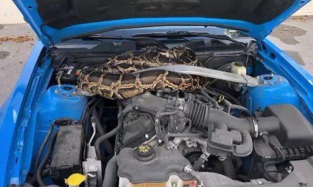 കാറിന്റെ ബോണറ്റിനകത്ത് കണ്ടെത്തിയത് പത്ത് അടി നീളമുള്ള ബർമീസ് പെരുമ്പാമ്പിനെ. എഞ്ചിൻ ലൈറ്റ് പരിശോധിക്കാനായി ബോണറ്റ് തുറന്നപ്പോഴാണ് അപ്രതീക്ഷിതമായി പാമ്പിനെ കണ്ടത്. ഫ്ളോറിഡയിലെ ഡാനിയ ബീച്ചിനടുത്ത് വച്ചാണ് പാമ്പിനെ കാറിനുള്ളില് കണ്ടത്. ഉടൻ തന്നെ അധികൃതരെ വിവരമറിയിച്ചു.