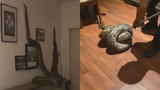 ചെറിയ പാമ്പാണെങ്കില് കൂടി കണ്ടാല് ഒരു നിമിഷം ഭയം തോന്നാത്തവര് ചുരുക്കമായിരിക്കും. അപ്പോള് പെരുമ്പാമ്പ് ആണെങ്കിലോ, പറയാതിരിക്കുകയായിരിക്കും ഭേദം. അപ്രതീക്ഷിതമായി വീട്ടിനുള്ളില് കുടുങ്ങിയ എട്ടടിയിലധികം നീളമുള്ള പെരുമ്പാമ്പിന്റെ ദൃശ്യങ്ങളാണ് ഇപ്പോള് വൈറലാകുന്നത്.