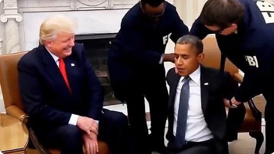ട്രൂത്ത് സോഷ്യലില് പോസ്റ്റ് ചെയ്ത വീഡിയോയില്, 'പ്രത്യേകിച്ച് പ്രസിഡന്റ് നിയമത്തിന് മുകളിലാണ്' എന്ന് ഒബാമ പറയുന്നതോടെയാണ് ആരംഭിക്കുന്നത്. തുടര്ന്ന് നിരവധി യുഎസ് രാഷ്ട്രീയക്കാര് 'ആരും നിയമത്തിന് മുകളിലല്ല' എന്ന് പറയുന്നത് വീഡിയോയില് കാണാം. തുടര്ന്ന് എഐ നിര്മ്മിത വീഡിയോയില്, മുമ്പ് പ്രസിഡൻറായിരുന്ന ഓഫീസില് വെച്ച് ഒബാമയെ എഫ്ബിഐ ഊദ്യോഗസ്ഥര് കൈ വിലങ്ങ് അണിയിച്ചു കൊണ്ടുപോകുന്നതാണ് ദൃശ്യങ്ങളിലുള്ളത്.