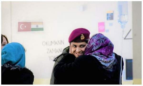 തുർക്കിയിൽ ദുരന്തനിവാരണ ദൗത്യത്തിൽ പ്രവർത്തിക്കുന്ന ഒരു വനിത ഉദ്യോഗസ്ഥയ്ക്ക് തുർക്കി സ്വദേശിയായ ഒരു സ്ത്രീ കവിളിൽ സ്നേഹ ചുംബനം നൽകുന്നതാണ് ചിത്രത്തിൽ. അഡിഷണൽ ഡയറക്ട്രേറ്റ് ജനറൽ ഓഫ് പബ്ലിക് ഇൻഫൊർമേഷൻ (എഡിജി പിഐ)യുടെ ട്വിറ്റർ പേജിലാണ് ചിത്രം പോസ്റ്റ് ചെയ്തത്.