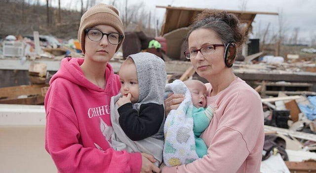 ഡിസംബർ പത്തിന് കെന്റകിയിൽ വീശിയടിച്ച ചുഴലിക്കാറ്റിൽ നിന്ന് കുഞ്ഞുങ്ങളെ രക്ഷിക്കാൻ മുത്തശ്ശിയായ ക്ലാര ലുറ്റ്‌സ് അവരെ പുതപ്പിൽ പൊതിഞ്ഞ് ബാത്ടബ്ബിൽ കിടത്തുകയായിരുന്നു. പുതപ്പിനും തലയിണയ്ക്കുമൊപ്പം ഒരു ബൈബിളും ക്ലാര ബാത്ടബ്ബിൽ വെച്ചിരുന്നു. ശക്തമായ ചുഴലിക്കാറ്റിൽ വീട് തകരുകയും കുഞ്ഞുങ്ങളെ കിടത്തിയ ബാത്ടബ്ബ് പറന്നു പോകുകയും ചെയ്തു.