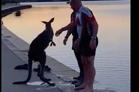 കംഗാരു 'ചാടിച്ചാടി ഓടുന്നത് കാണാന് പ്രത്യേക ഭംഗിയാണ്. ഇപ്പോള് തണുത്തുറഞ്ഞ നദിയില് കാല് അനക്കാന് കഴിയാതെ കുടുങ്ങിയ കംഗാരുവിനെ രക്ഷിക്കുന്നതിന്റെയും ഇതിന് കംഗാരുവിന്റെ നന്ദിപ്രകടനത്തിന്റെയും ദൃശ്യങ്ങളാണ് ഇപ്പോള് വൈറലാകുന്നത്.