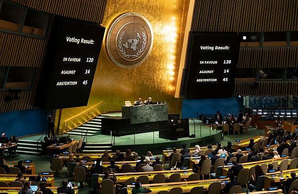 കാലിഫോര്ണിയ: ഇസ്രയേല്- ഹമാസ് യുദ്ധത്തിനെതിരെ പ്രമേയം പാസാക്കി യുഎന് ജനറല് അസംബ്ലി. ജോര്ദാന്റെ നേതൃത്വത്തിലാണ് പ്രമേയം അവതരിപ്പിച്ചത്. ഇന്ത്യയടക്കം 45 രാജ്യങ്ങള് വോട്ടെടുപ്പില് നിന്നു വിട്ടുനിന്നു. 120 രാജ്യങ്ങളുടെ പിന്തുണയില് പ്രമേയത്തെ അനുകൂലിച്ചു. 14 രാജ്യങ്ങള് എതിര്ത്തു.
