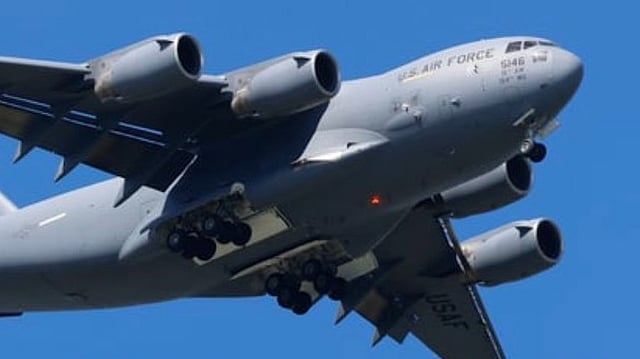 സി 17 സൈനിക വിമാനം അനധികൃത കുടിയേറ്റക്കാരുമായി പുറപ്പെട്ടുവെന്ന് റോയിട്ടേഴ്സാണ് റിപ്പോർട്ട് ചെയ്തത്. എന്നാൽ ഇതിനു ഔദ്യോഗിക സ്ഥിരീകരണം ഇല്ല. പ്രാഥമിക പട്ടികയിൽ 18,000 ഇന്ത്യക്കാരുണ്ടെന്നാണ് വിവരം. 7.25 ലക്ഷം ഇന്ത്യക്കാർ അനധികൃതമായി അമേരിക്കയിൽ താമസിക്കുന്നുണ്ട്. ഇന്ത്യക്കാരടക്കം 15 ലക്ഷം വിദേശികളാണ് തിരിച്ചയയ്ക്കൽ പട്ടികയിലുള്ളത്.