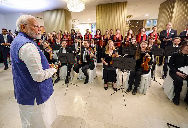 വിയന്നയിലെ റിറ്റ്സ്-കാള്ട്ടണ് ഹോട്ടലില് എത്തിയ പ്രധാനമന്ത്രിയെ ഹോട്ടലില് വച്ച് ഓസ്ട്രിയയിലെ ഇന്ത്യന് സമൂഹത്തിന്റെ പ്രതിനിധികള് ചേര്ന്നാണ് സ്വീകരിച്ചത്. തുടര്ന്നാണ് മോദിയെ സ്വാഗതം ചെയ്ത് കൊണ്ട് ഓസ്ട്രിയന് കലാകാരന്മാര് ചേര്ന്ന് വന്ദേമാതരം ആലപിച്ചത്.