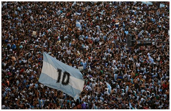 തലസ്ഥാന നഗരമായ ബ്യൂണസ് ഐറിസില് ഏകദേശം 20 ലക്ഷം ആളുകള് ആഹ്ലാദ പ്രകടനത്തിനെത്തി. മെസിയുടെയും മറഡോണയുടെയും ചിത്രങ്ങളുമായാണ് ആരാധകരുടെ ആഹ്ലാദ പ്രകടനം.
