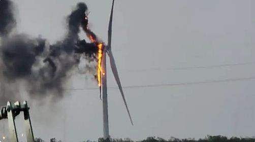 കാറ്റാടിയിലേക്ക് തീ പടരുന്നതും പുക ഉയരുന്നതും ദൃശ്യങ്ങളില് കാണാം. കാറ്റാടിയുടെ ഏറ്റവും മുകളിലെ അറ്റത്താണ് തീ പിടിച്ചത്. അഞ്ച് മിനിറ്റിനുള്ളില് തീ പടര്ന്നു കയറി കാറ്റാടി മുഴുവനായി കത്തിയമര്ന്നു എന്നാണ് ദൃക്സാക്ഷി പറഞ്ഞത്.