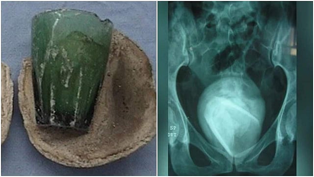 യുവതിക്ക് യൂറിനറി ഇന്ഫെക്ഷന്റെ ലക്ഷണങ്ങളാണുണ്ടായിരുന്നു. എപ്പോഴും ടോയ്ലറ്റിലേക്ക് പോകേണ്ട അവസ്ഥയാണെന്ന് പരാതിപ്പെട്ടാണ് ഇവര് ആശുപത്രിയിലെത്തിയത്. തുടര്ന്ന് യുവതിയുടെ മൂത്രസഞ്ചി സ്കാന് ചെയ്തു. അപ്പോഴാണ് ഒരു ഗ്ലാസില് പൊതിഞ്ഞ വലിയ മൂത്രാശയ കല്ല് പോലൊരു വസ്തു കണ്ടെത്തിയത്. ഇത് 8-സെന്റീമീറ്റര് വീതിയുള്ള ഒരു 'ഭീമന്' കല്ല് ആയിരിക്കാമെന്നായിരുന്നു ഡോക്ടര്മാര് ആദ്യം കരുതിയത്.