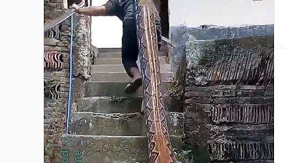 കൂറ്റൻ പെരുമ്പാമ്പിനെ തോളിലിട്ട് പടിക്കെട്ടുകൾ കയറുന്ന യുവാവ്- വൈറൽ വീഡിയോ