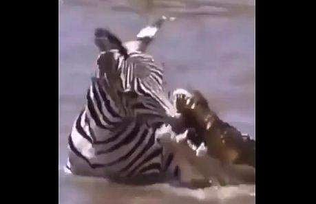 മുതലയോട് പോരാടുന്ന സീബ്രയുടെ ദൃശ്യം