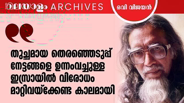 ഇസ്രയേലിനെ അനുകൂലിച്ച് ഒരു ലേഖനം എഴുതിയിട്ട് മലയാളത്തിലെ മാധ്യമങ്ങള് അതു പ്രസിദ്ധീകരിക്കാന് മടിച്ചെന്ന് ഒവി വിജയന് തുറന്നു പറഞ്ഞത്, കാല് നൂറ്റാണ്ടു മുമ്പാണ്. പലസ്തീന് - ഇസ്രായേല് വിഷയത്തില് അന്നത്തെ പൊതു ബോധത്തിനു ഭിന്നമായ നിലപാടായിരുന്നു, വിജയന്റേത്. വലിയ ചര്ച്ചകള്ക്കാണ് അതു വഴിച്ചത്. 1997 ജൂലൈ നാലിലെ മലയാളം വാരികയില് ഒവി വിജയന് എഴുതിയ ലേഖനം വീണ്ടും വായിക്കാം.