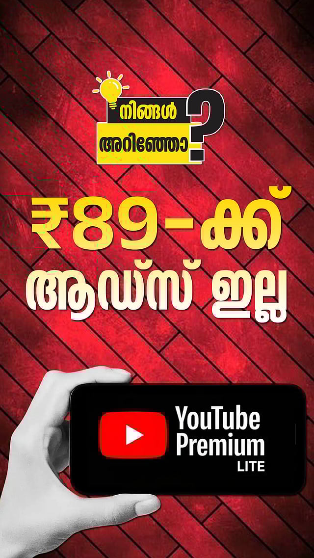 YouTube ന്റെ പുതിയ പ്രീമിയം ലൈറ്റ് സബ്‌സ്‌ക്രിപ്ഷൻ പ്ലാനിന് വെറും 89 രൂപ | YouTube Premium Lite