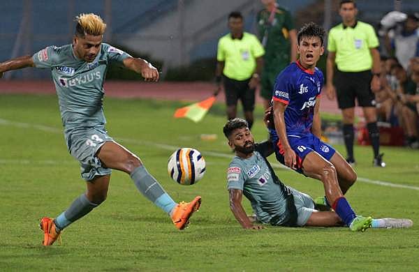 കളി തുടങ്ങി 14ാം മിനിറ്റില് തന്നെ ബ്ലാസ്റ്റേഴ്സ് മുന്നിലെത്തി. വിപിന് മോഹനന്റെ അസിസ്റ്റില് ജസ്റ്റിന് ഒജോക ഇമ്മാനുവല് ബ്ലാസ്റ്റേഴ്സിനു ലീഡ് സമ്മാനിച്ചു. 38ാം മിനിറ്റില് ബംഗളൂരു സമനില പിടിച്ചു. എഡ്മുണ്ട് ലാല്റന്ഡികയാണ് ബംഗളൂരുവിനു സമനില സമ്മാനിച്ചത്.