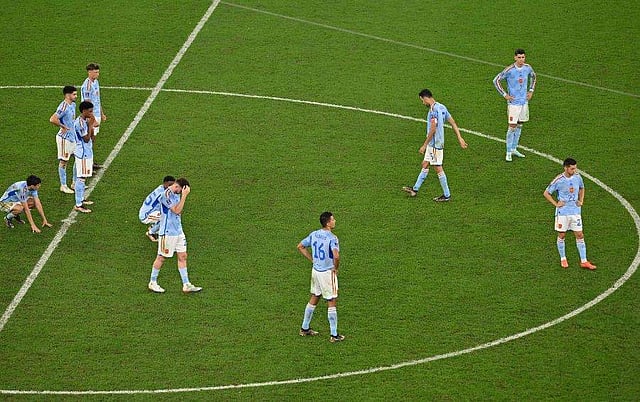മൊറോക്കോയ്ക്ക് എതിരെ ഒരു പെനാല്റ്റി കിക്ക് പോലും വലയിലാക്കാന് സ്പെയ്നിന് സാധിച്ചിരുന്നില്ല. സ്പെയ്നിന് മൂന്ന് കിക്കുകളും വലയിലെത്തിക്കാന് കഴിയാതെ വന്നപ്പോള് രണ്ട് കിക്കുകള് തടഞ്ഞിട്ട് യാസിന് ബോനോയാണ് മൊറോക്കോയുടെ ഹീറോയായത്. കാര്ലോസ് സോളര്, ബുസ്ക്വെറ്റ്സ് എന്നിവരുടെ കിക്കുകളാണ് ബോനു തടഞ്ഞിട്ടത്. സ്പെയ്നിന്റെ ആദ്യ കിക്ക് എടുത്ത പാബ്ലോ സറാബിയയുടെ കിക്ക് പോസ്റ്റില് തട്ടി മടങ്ങിയിരുന്നു.