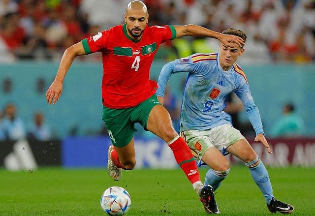 സ്പെയ്നിന് എതിരെ 120 മിനിറ്റും അംറാബത്ത് കളിച്ചു. സ്പാനിഷ് പടയുടെ പാസിങ് ഗെയിമില് പലവട്ടം ഇന്റര്സെപ്ഷനുകളോട് കല്ലുകടി തീര്ക്കാനും താരത്തിനായി. 77 ശതമാനം ബോള് പൊസഷനോടെ സ്പെയ്ന് കളിച്ചപ്പോള് മൊറോക്കോയുടെ കൈകളില് നിന്ന് പെഡ്രിയും ഗാവിയും അസെന്സിയോയും കളി തട്ടിയെടുക്കുന്നില്ലെന്ന് ഉറപ്പിച്ചാണ് അംറാബത്ത് കളം നിറഞ്ഞത്.