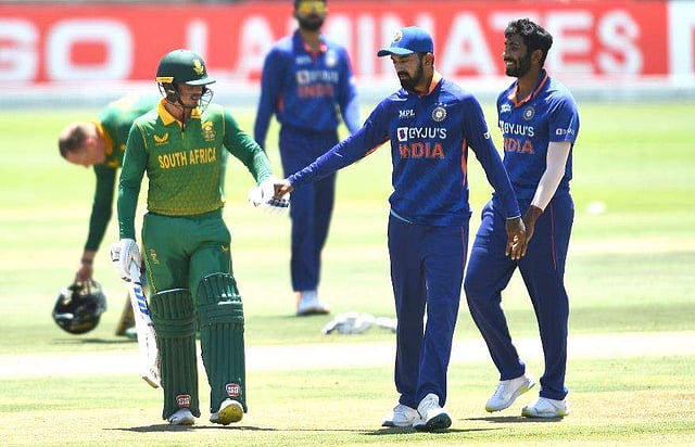 ടോസ് നേടി ഇന്ത്യ ദക്ഷിണാഫ്രിക്കയെ ബാറ്റിങിന് വിടുകയായിരുന്നു. തുടക്കത്തില് തന്നെ മൂന്ന് വിക്കറ്റുകള് വീഴ്ത്തി ഇന്ത്യ മികവോടെ തുടങ്ങിയെങ്കിലും ക്വിന്റണ് ഡി കോക്ക്- ഡസ്സന് സഖ്യം ഇന്ത്യയുടെ കണക്കുകൂട്ടലുകള് തെറ്റിച്ചു.