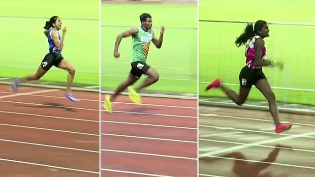 ജൂനിയര് ആണ്കുട്ടികളുടെ 100 മീറ്ററില് വിഭാഗത്തില് ആലപ്പുഴ സ്വദേശി അതുല് ടി എം ഒന്നാമനായി. 10.81 സെക്കന്ഡില് ഫിനിഷിങ് ചെയ്ത അതുല് മീറ്റ് റെക്കോര്ഡോടെയാണ് സ്വര്ണം നേടിയത്. 1988ല് ജിവി രാജയുടെ രാംകുമാര് കുറിച്ച 10.9 സെക്കന്ഡ് എന്ന സമയമാണ് അതുല് മറികടന്നത്. കോട്ടയത്തിന്റെ ശ്രീഹരിക്കാണ് ഈ വിഭാഗത്തില് (11 സെക്കന്ഡ്) വെള്ളി. ജൂനിയര് പെണ്കുട്ടികളുടെ വിഭാഗത്തില് കോഴിക്കോട് താരം ദേവനന്ദ സ്വര്ണം നേടി. 12.45 സെക്കന്ഡിലാണ് ഫിനിഷ് ചെയ്തത്.