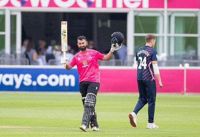 മിഡില്‍സെക്‌സിനെതിരായ റോയല്‍ ലണ്ടന്‍ വണ്‍ ഡേ കപ്പ് മത്സരത്തില്‍ 90 പന്തില്‍ നിന്ന് 132 റണ്‍സ് ആണ് പൂജാര അടിച്ചെടുത്തത്