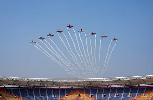 ഉച്ചയ്ക്ക് രണ്ട് മുതലാണ് പോരാട്ടം. 1.35 മുതല് 15 മിനിറ്റ് നേരം ഇന്ത്യന് വ്യോമസേനയുടെ സൂര്യ കിരണ് എയ്റോബാറ്റിക്ക് ടീം നടത്തുന്ന ആകാശത്തെ അഭ്യാസങ്ങള് കാണാം. അഹമ്മദാബാദ് വിമാനത്താവളത്തില് നിന്നു പറന്നുയരുന്ന ഒന്പത് വിമാനങ്ങള് നരേന്ദ്ര മോദി സ്റ്റേഡിയത്തിനു മുകളിലെ ആകാശത്ത് മാസ്മരിക പ്രകടനം തീര്ക്കും. കളിക്ക് മുന്പ് ആരാധകര്ക്ക് മറ്റൊരു ആവേശമായി ഇതു മാറുമെന്നു അധികൃതര് പറയുന്നു.