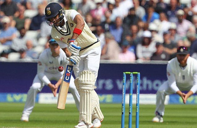 46 പന്തില്‍ നിന്ന് 13 റണ്‍സ് എടുത്താണ് പൂജാര മടങ്ങിയത്. എഡ്ജ് ആയി പന്ത് സെക്കന്‍ഡ് സ്ലിപ്പില്‍ സാക്ക് ക്രൗലിയുടെ കൈകളിലേക്കാണ് ആന്‍ഡേഴ്‌സന്‍ എത്തിച്ചത്. 15ാം ഓവറില്‍ ബ്രോഡിന്റെ ഡെലിവറിയില്‍ പൂജാരയ്‌ക്കെതിരായ എഡ്ജ് അപ്പീലില്‍ ഓണ്‍ ഫീല്‍ഡ് അമ്പയര്‍ ഔട്ട് വിളിച്ചിരുന്നു. എന്നാല്‍ പൂജാര റിവ്യു എടുക്കുകയും അള്‍ട്രാ ഏഡ്ജില്‍ പന്ത് ബാറ്റില്‍ കൊണ്ടിട്ടില്ലെന്ന് വ്യക്തമാവുകയും ചെയ്തു. എന്നാല്‍ കൂടുതല്‍ സമയം ക്രീസില്‍ നില്‍ക്കാന്‍ പൂജാരയ്ക്ക് കഴിഞ്ഞില്ല.