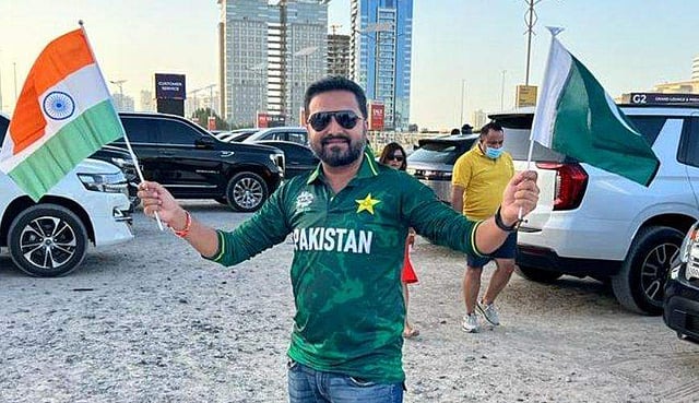 ദുബായ്: പാക് ജഴ്‌സി ധരിച്ച് കളി കാണാന്‍ എത്തിയതോടെ വെട്ടിലായി ഉത്തര്‍പ്രദേശ് ബറേലി സ്വദേശി. ഏഷ്യാ കപ്പിലെ ഇന്ത്യാ-പാക് മത്സരം കാണാന്‍ പാക് ജഴ്‌സി അണിഞ്ഞ് വന്നതിന്റെ പേരില്‍ ഭീഷണി സന്ദേശങ്ങളും സമൂഹ മാധ്യമങ്ങളില്‍ അധിക്ഷേപവും നേരിടുകയാണ് 42കാരനായ സന്യം ജയ്‌സ്വാള്‍.