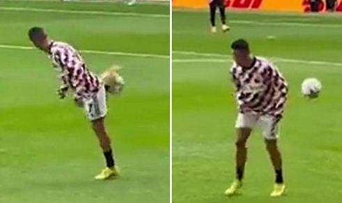 ആഴ്സണലിനെ നേരിടാന് പോകുന്നതിന് മുന്പായി ഗ്രൗണ്ടില് വെച്ച് പരിശീലനം നടത്തുമ്പോഴാണ് സംഭവം. ഫ്രഡിനും കസമീറോക്കും ഒപ്പമാണ് ക്രിസ്റ്റ്യാനോ ഇവിടെ പരിശീലനം നടത്തിക്കൊണ്ടിരുന്നത്. ഈ സമയം ബാക്ക് ഹീല് ചെയ്യാനുള്ള ക്രിസ്റ്റ്യാനോയുടെ ആദ്യ ശ്രമം പിഴച്ചു.
