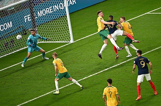9ാം മിനിറ്റില് ഗ്രെയ്ഗ് ഗുഡ്വിന് ആണ് ഓസ്ട്രേലിയക്ക് സ്വപ്ന തുടക്കം നല്കിയത്. മാത്യു ലിക്കിയുടെ ക്രോസില് നിന്ന് ഗോഡ് വിന് പന്ത് വലയിലെത്തിച്ചു. എന്നാല് എംബാപ്പെയും ഒസ്മാന് ഡെംബെലെയും ഓസ്ട്രേലിയന് ഗോള്മുഖത്ത് ആദ്യ മിനിറ്റുകളില് അവസരങ്ങള് സൃഷ്ടിച്ചുകൊണ്ടിരുന്നു.