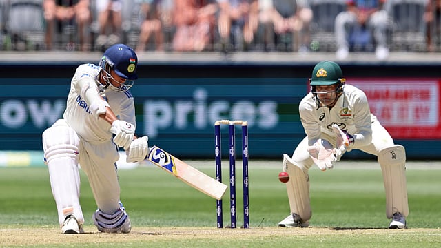 പെര്ത്ത്: ഓസ്ട്രേലിയക്കെതിരായ പെര്ത്ത് ക്രിക്കറ്റ് ടെസ്റ്റില് ഇന്ത്യന് ഓപ്പണര് യശസ്വി ജെയ്സ്വാളിന്റെ കരുത്തില് ലീഡ് 300 കടത്തി കുതിച്ച് ഇന്ത്യ. ഹെയ്സല്ലുഡിനെ സിക്സിന് പറത്തി സെഞ്ച്വറി തികച്ച ജെയ്സ്വാള് 141 റണ്സുമായി പുറത്താകാതെ നില്ക്കുകയാണ്. കൂട്ടിന് ദേവ്ദത്ത് പടിക്കല് ഉണ്ട്. 25 റണ്സുമായി പുറത്താകാതെ നില്ക്കുന്ന പടിക്കല് ജെയ്സ്വാളിന് മികച്ച പിന്തുണയാണ് നല്കുന്നത്. ഉച്ചഭക്ഷണത്തിന് പിരിയുമ്പോള് 84 ഓവറില് ഒരു വിക്കറ്റ് നഷ്ടത്തില് 275 റണ്സ് എന്ന നിലയിലാണ് ഇന്ത്യ.