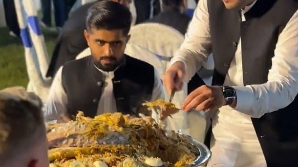 പാക് താരങ്ങളുടെ ഫിറ്റ്നസും ടീമിന്റെ മോശം പ്രകടനങ്ങളും സമീപ കാലത്ത് വലിയ ചർച്ചയായിരുന്നു. അതിനിടെയാണ് അത്താഴ വിരുന്നിലെ താരങ്ങളുടെ ചില ദൃശ്യങ്ങൾ വൈറലായി മാറിയത്. ആവി പറക്കുന്ന മട്ടൻ ബിരിയാണിക്കു സമീപം ബാബർ അസം നിൽക്കുന്നതിന്റേയും കഴിക്കുന്നതിന്റേയും മറ്റൊരാളെ കഴിക്കാൻ വിളിക്കുന്നതിന്റേയുമൊക്കെ ദൃശ്യങ്ങൾ സമൂഹ മാധ്യമങ്ങളിൽ പ്രചരിക്കുന്നുണ്ട്.