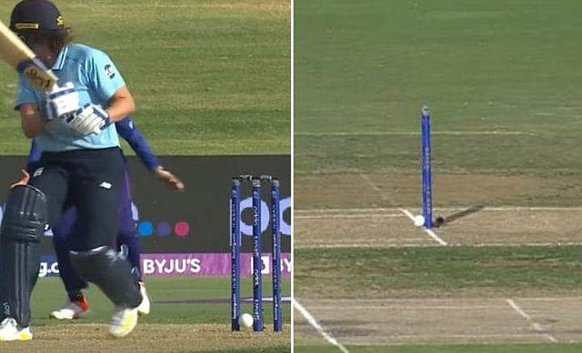 ടൗരംഗ: ഇംഗ്ലണ്ടിന് മുന്‍പില്‍ 134 റണ്‍സിന് തകര്‍ന്നടിഞ്ഞെങ്കിലും ജയത്തിനായി പൊരുതിയതിന് ശേഷമാണ് ഇന്ത്യന്‍ വനിതകള്‍ തോല്‍വി സമ്മതിച്ചത്. ഇവിടെ നിര്‍ണായകമായത് ഇംഗ്ലണ്ട് ബാറ്റര്‍ സിവര്‍ സ്‌ട്രൈക്ക് ചെയ്യുമ്പോള്‍ പന്ത് സ്റ്റംപില്‍ തട്ടിയിട്ടും ബെയില്‍സ് താഴെ വീഴാതിരുന്നതാണ്.