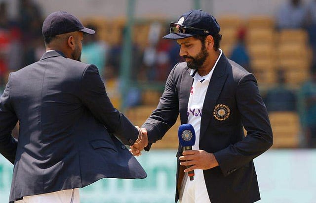 ബംഗളൂരു: ശ്രീലങ്കയ്ക്ക് എതിരായ പരമ്പരയിലെ രണ്ടാമത്തെ ടെസ്റ്റില്‍ ടോസ് ഇന്ത്യക്ക്. ടോസ് നേടിയ രോഹിത് ബംഗളൂരുവില്‍ ബാറ്റിങ് തെരഞ്ഞെടുത്തു.