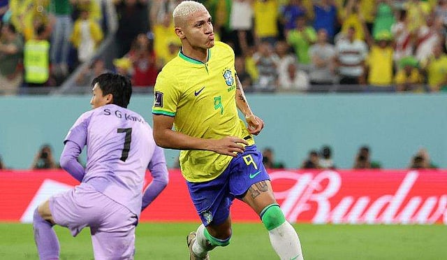 റിച്ചാര്ലിസനെ കൊറിയയുടെ ജങ് വൂ യങ് ഫൗള് ചെയ്തതിന് ലഭിച്ച പെനാല്റ്റി കിക്ക് നെയ്മര് ഗോള്പോസ്റ്റിന്റെ വലത് മൂലയിലെത്തിച്ചു. 29ാം മിനിറ്റില് ബ്രസീലിന്റെ ലീഡ് 3-0 ആയി ഉയര്ത്തി റിച്ചാര്ലിസന്റെ ഗോളെത്തി. ആദ്യം പന്ത് ഒന്നിലധികം തവണ ഹെഡ് ചെയ്ത് നിയന്ത്രണത്തിലാക്കാന് ശ്രമിച്ച റിച്ചാര്ലിസന് പിന്നാലെ തിയാഗോ സില്വയ്ക്ക് പാസ് ചെയ്ത് ബോക്സിനുള്ളിലേക്ക് ഓടി. പന്ത് കൃത്യമായി റിച്ചാര്ലിസന്റെ കാലുകളിലെത്തിയതോടെ ടോട്ടനം സ്ട്രൈക്കര് പിഴവുകളില്ലാതെ പന്ത് വലയിലെത്തിച്ചു.