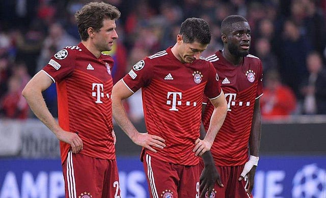വില്ലാറയലിനോട് സമനില വഴങ്ങിയ നിരാശയില്‍ ബയേണ്‍ താരങ്ങള്‍/ഫോട്ടോ: എഎഫ്പി