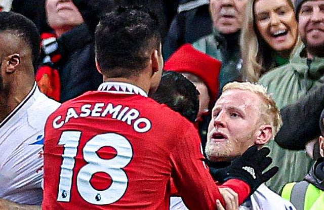 ഭ്രാന്തൻ നിമിഷം! ഹ്യൂസിന്റെ കഴുത്തില്‍ കുത്തിപ്പിടിച്ച് കാസെമിറോ; കളത്തിലെ കൈയാങ്കളി (വീഡിയോ)